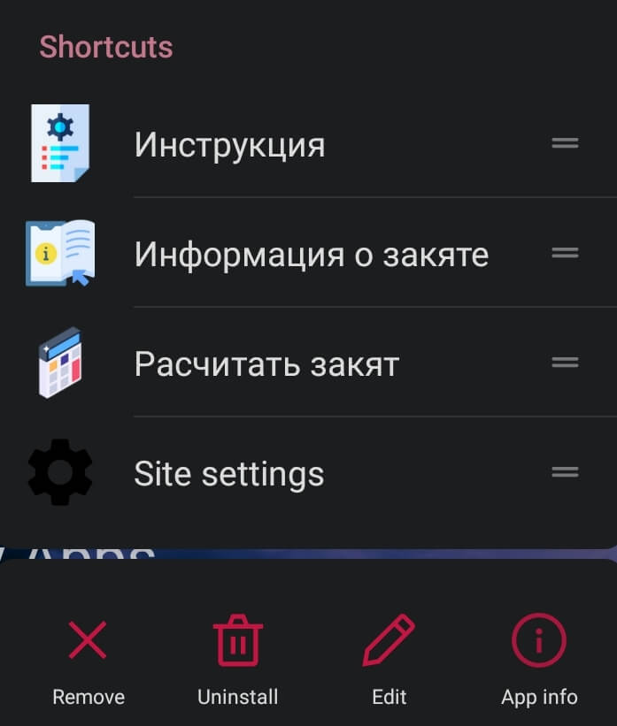 Для использования шорткатов требуется установка приложения на устройство. После этого нужно долгое нажатие на значок приложения и можно сразу перейти к нужному разделу приложения. Аппаратно пока что данная фишка не поддерживается на iOS для прогрессивных веб приложений.