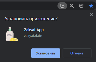 Обычно браузер автоматически предлагает установку приложения при входе на сайт.